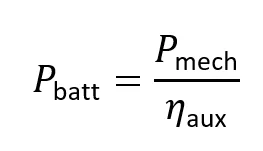 When a device (like a fan or pump) needs a certain mechanical power Pmech to do its job (e.g. move coolant), the electrical power it draws from the battery Pbatt depends on the efficiency of the whole chain: